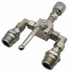 Kompletny rozdzielacz umożliwiający przełączanie pojedynczej linii zasilającej między dwoma liniami wyjściowymi. Komplet z zaworem kulowym i szybkozłączami.