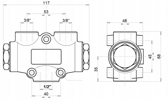 Gwinty wewnętrzne w korpusie [BSP] wyjście: 3/8''