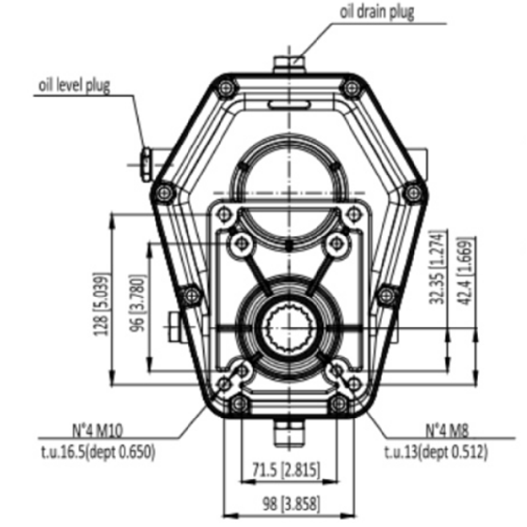 Multiplikator z gniazdem na wałek WOM, przełożenie 1:3.8, pasuje do pomp grupy 2 i 3. Posiada zatrzask zabezpieczający przed wysunięciem z wałka WOM.
