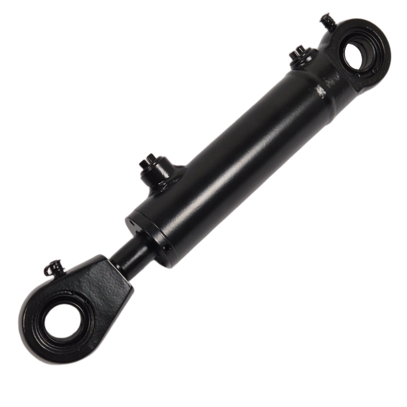 Cylinder hydraulczny dwustronnego działania, kompletny, z uszami na łożyskach wahliwych.