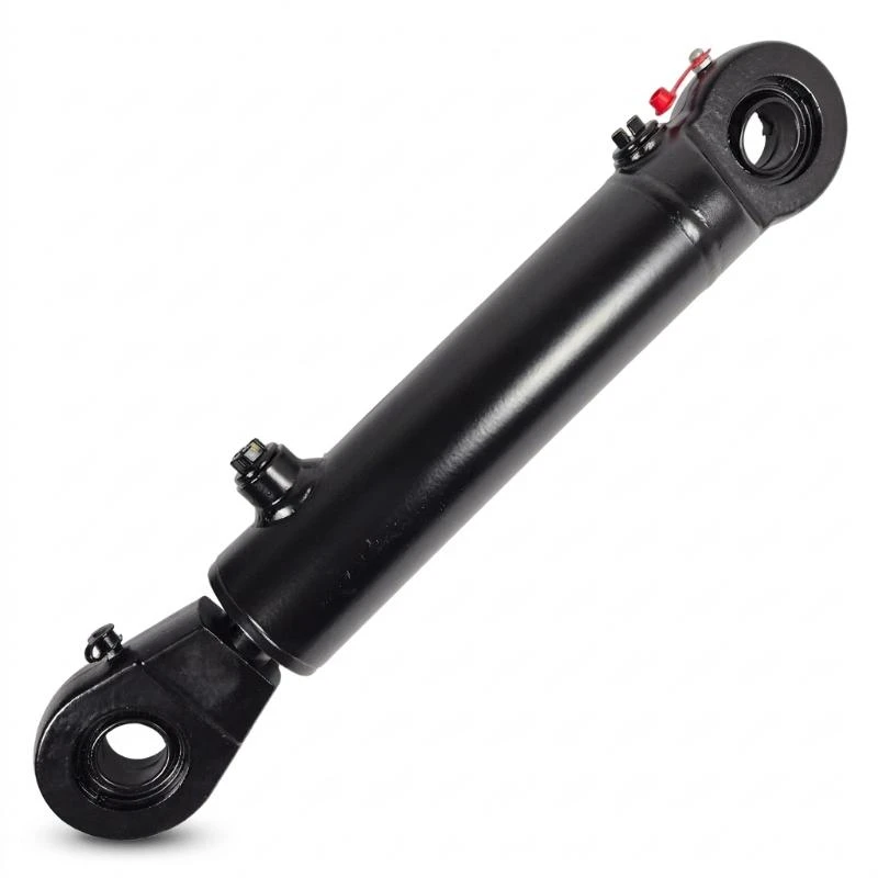 Cylinder hydraulczny dwustronnego działania, kompletny, z uszami na łożyskach wahliwych.