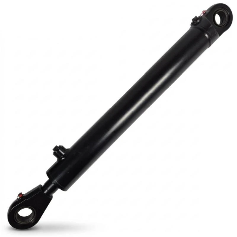 Cylinder hydraulczny dwustronnego działania, kompletny, z uszami na łożyskach wahliwych.