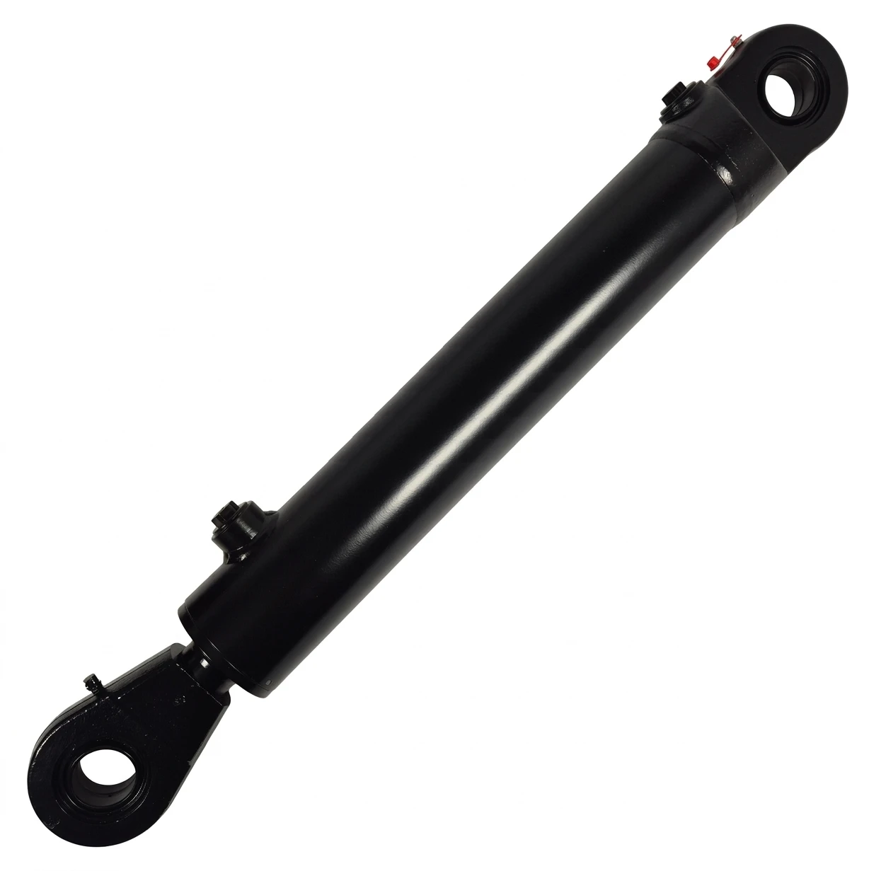 Cylinder hydraulczny dwustronnego działania, kompletny, z uszami na łożyskach wahliwych.