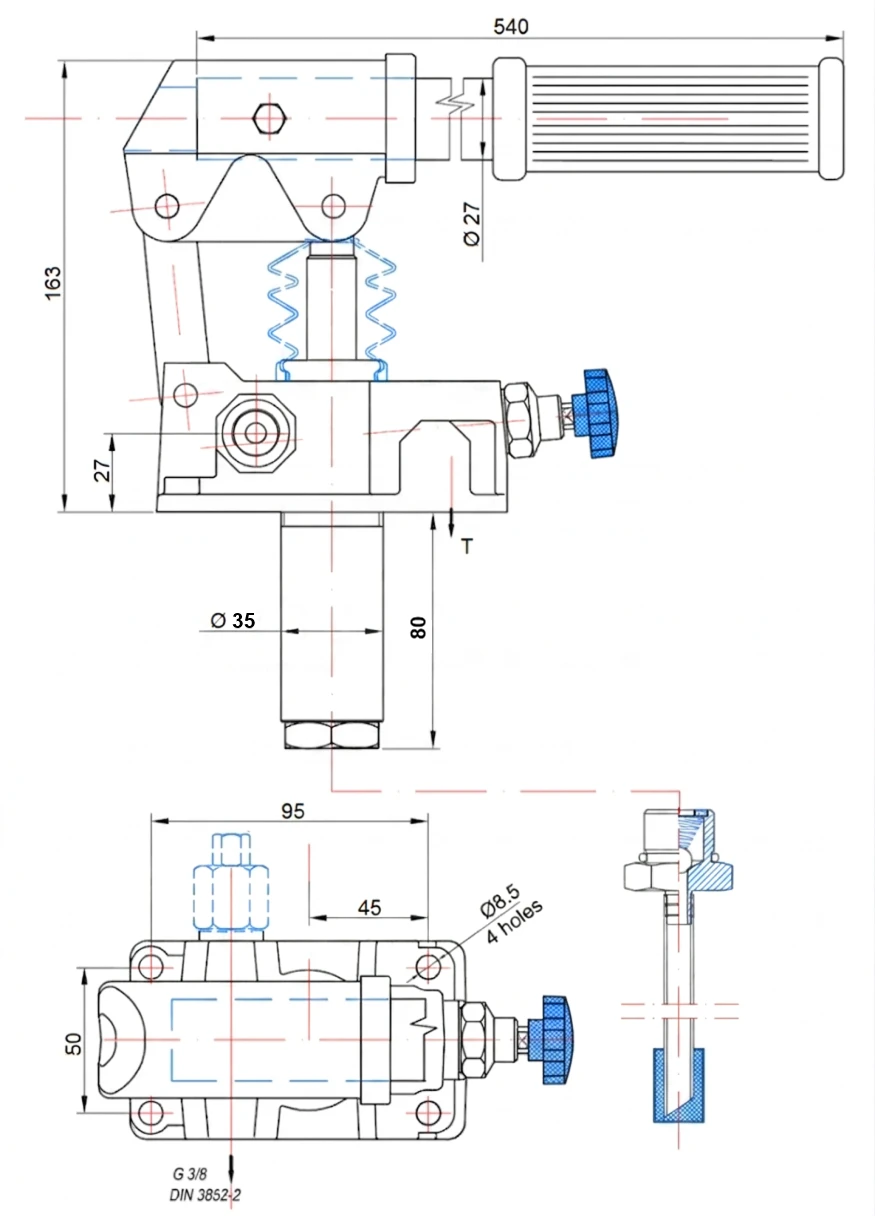 Pompa hydrauliczna ręczna jednostronnego działania 25cm pompka jednostronna