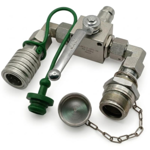 Kompletny rozdzielacz umożliwiający przełączanie pojedynczej linii zasilającej między dwoma liniami wyjściowymi. Komplet z zaworem kulowym i szybkozłączami.