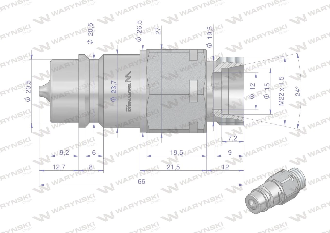 Szybkozłącze hydrauliczne wtyczka euro M22x1.5 gw zew krótki WARYŃSKI