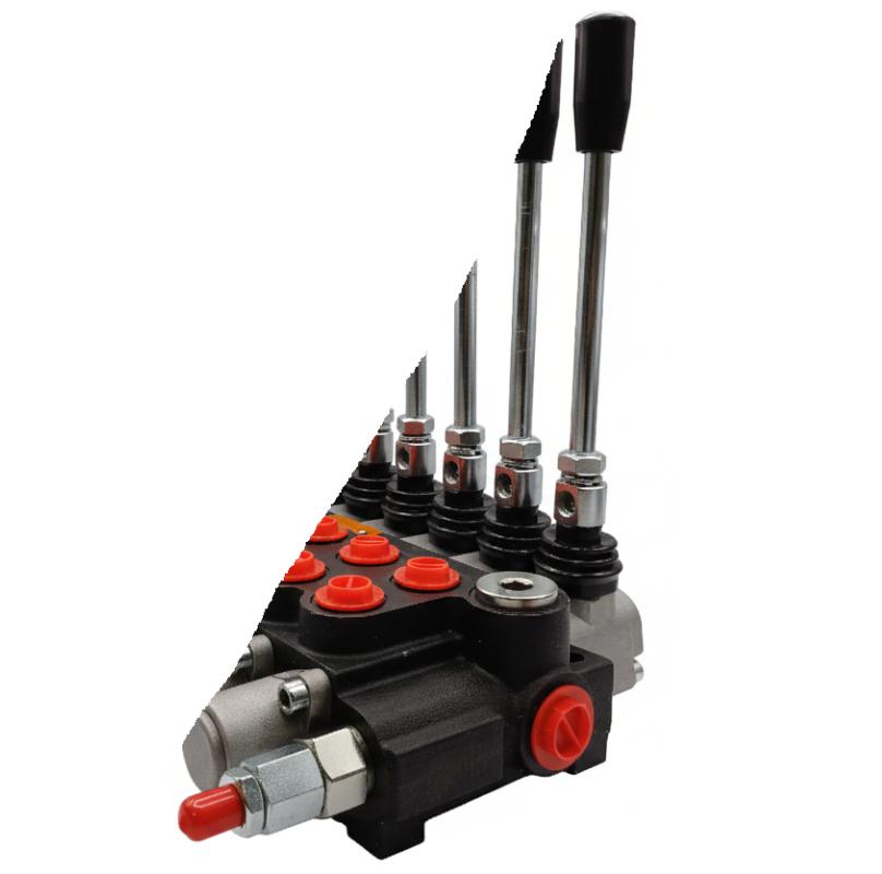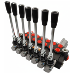 Rozdzielacz hydrauliczny siedmiosekcyjny o przepływie 40 l/min. Dźwignie na sprężynie, które automatycznie wracają z pozycji roboczej do neutralnej pozycji startowej. 1 dźwignia na sprężynie, czyli sama wraca do pionu + sekcja pływająca na zatrzasku.