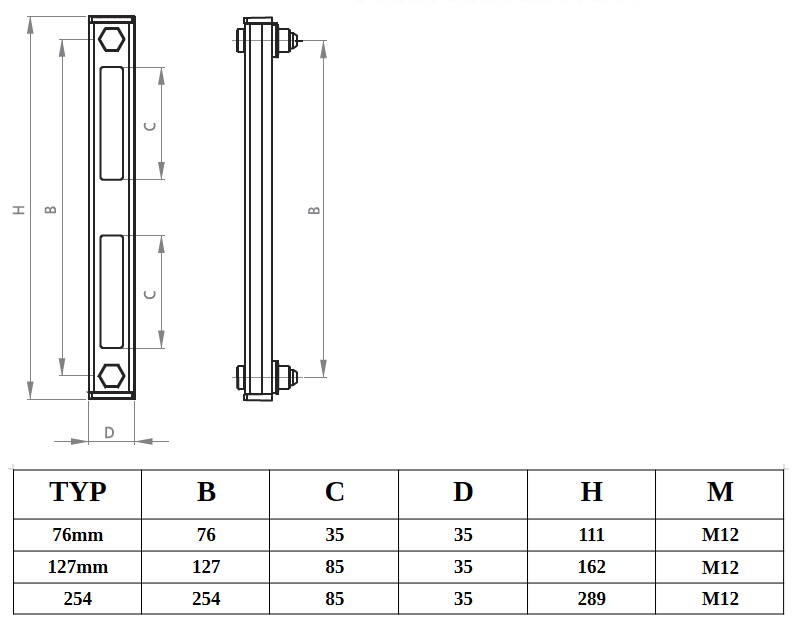 Rozstaw otworów 254mm gwint M12x1.5