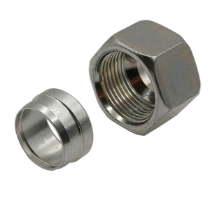Nakrętka zaciskowa z pierścieniem zaciskowym typu TEKALAN montowana na rurkę hydrauliczną.