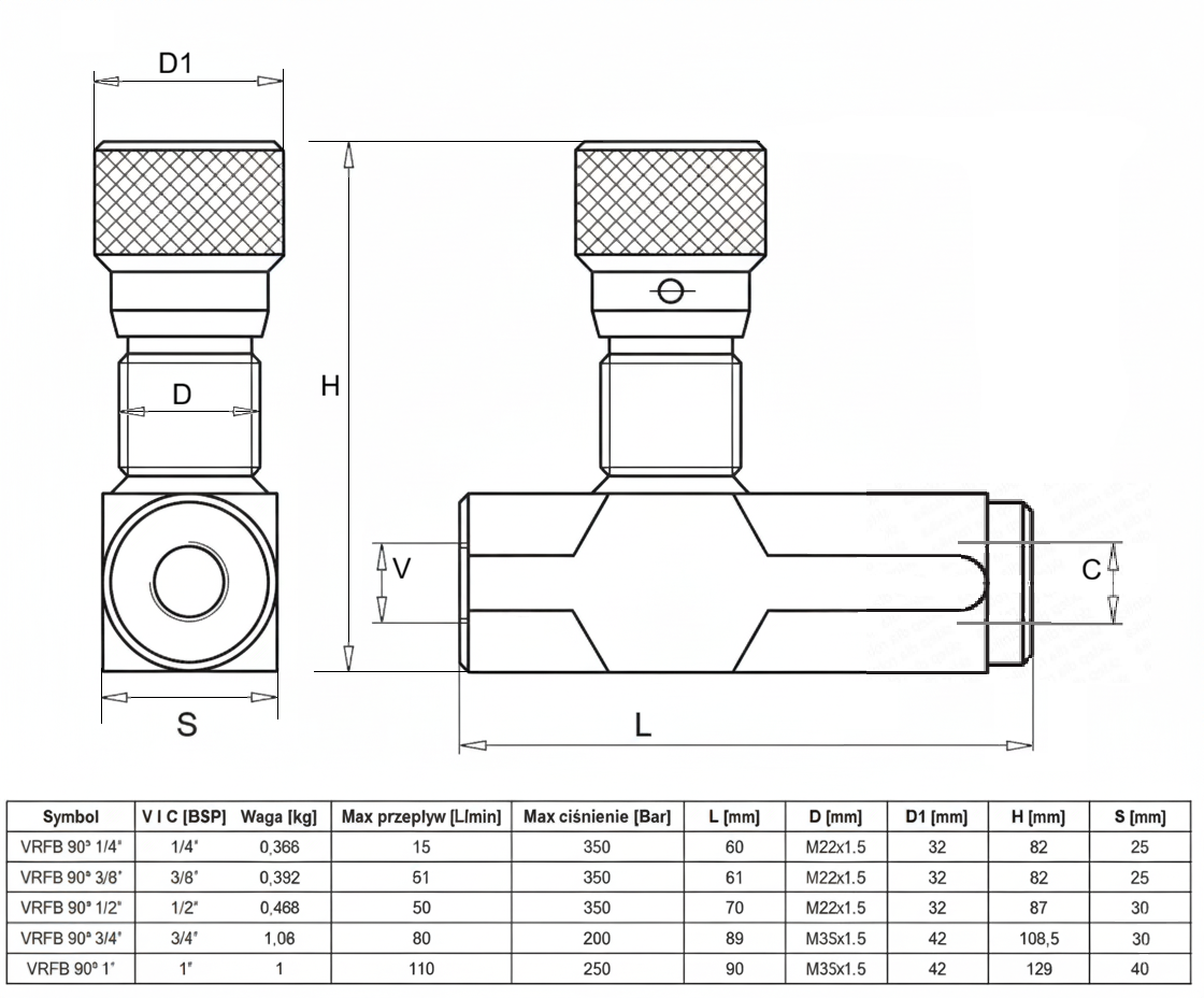 VRFU 90 1/2" Z PRECYZYJNĄ REGULACJĄ