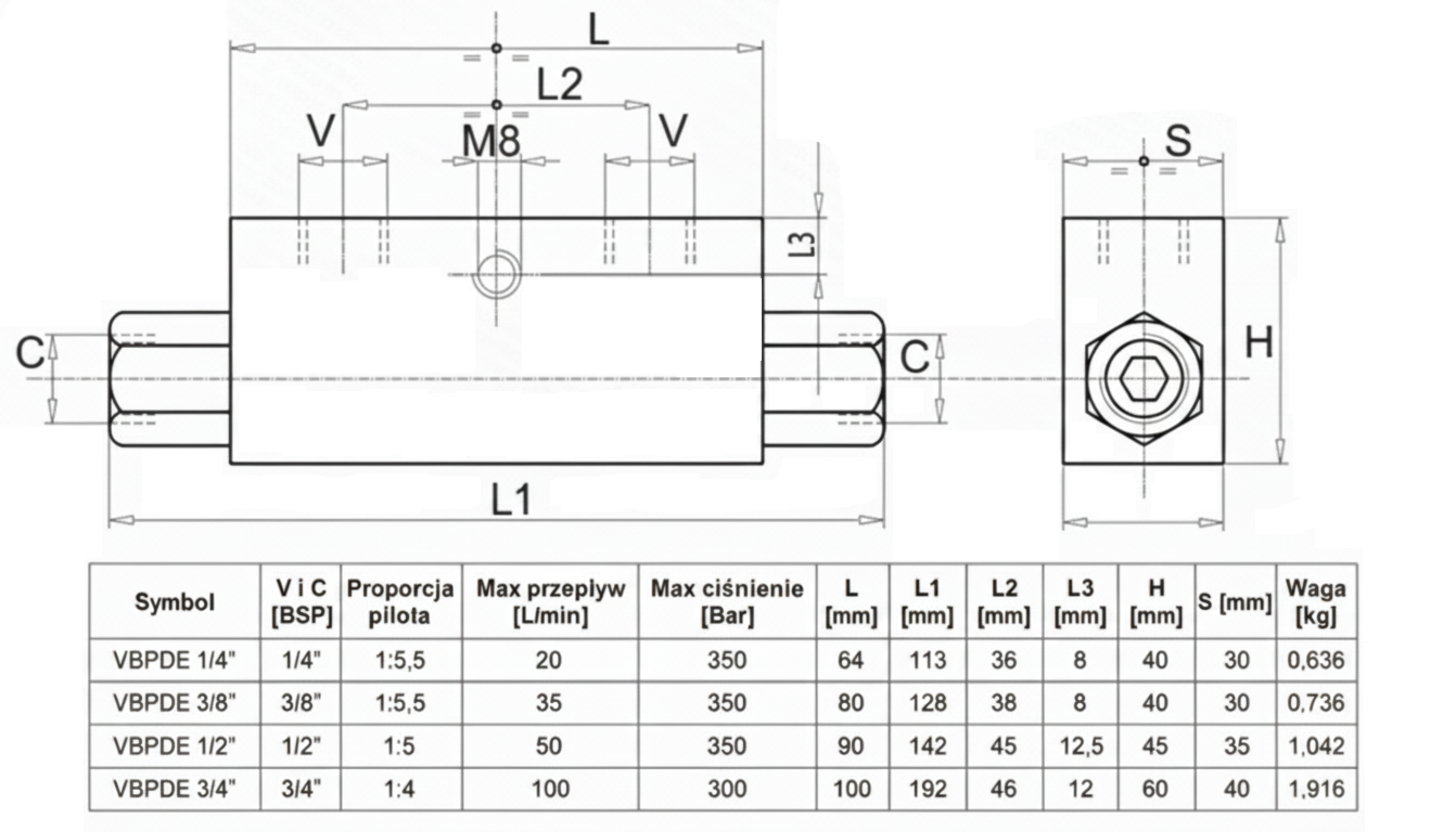 ZAWÓR HYDRAULICZNY ZWROTNY "ZAMEK" VBPDE 1/4"